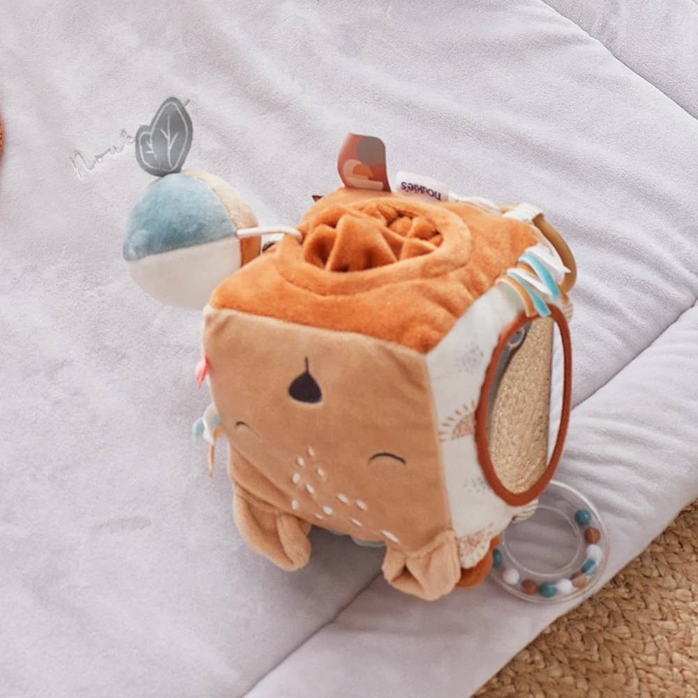 Le cube d’activités de la collection Babou & Kendi a été conçu pour favoriser la coordination entre l’œil et la main. Il développe également la motricité fine et les sens de bébé et deviendra très vite l’accessoire préféré des petits.