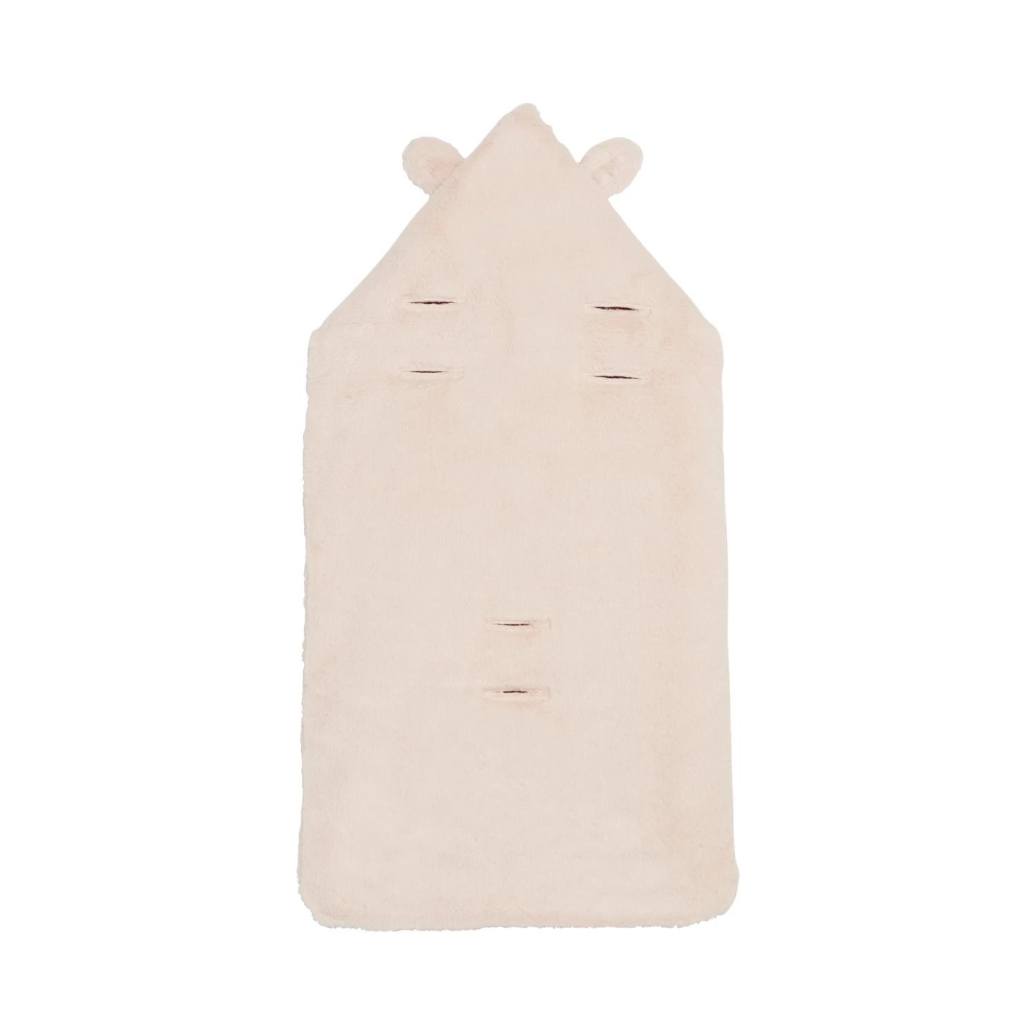 Nid d’ange P’tit Bisou en fausse fourrure rose pâle doublé de jersey à motifs petites biches.