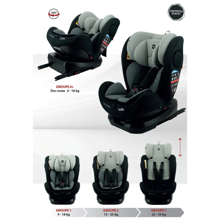 Le siège auto ROBI SP pivotant 360°, s’utilise en dos route jusqu’à 18kg à l’arrière du véhicule ou à l’avant avec l’airbag désactivé. Ce siège auto a testé et certifié selon la norme ECE R44/04, gage de sécurité.